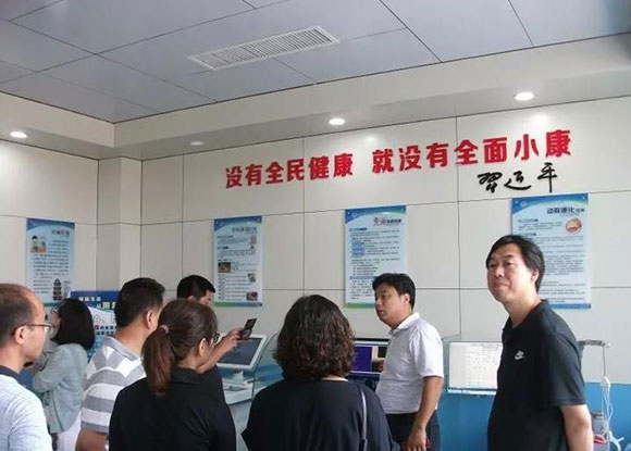 考察团还深入到集团南张乡卫生院进行了实地考察,重点了解基本公共卫生服务、家庭医生签约、健康扶贫、卫生院一体化改革、优质资源下沉、中医药建设、智能健康管理中心信息化建设、远程会诊、远程心电、标准化检验室、卫生院新型管理模式等工作。