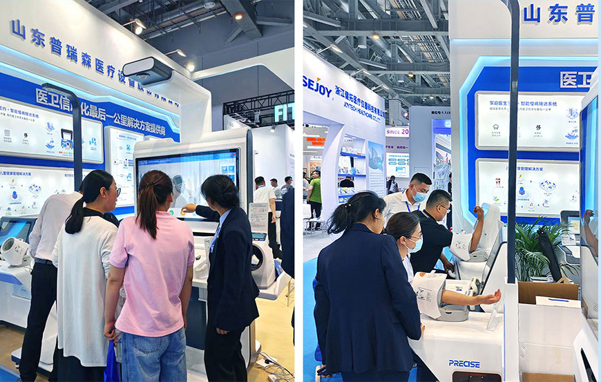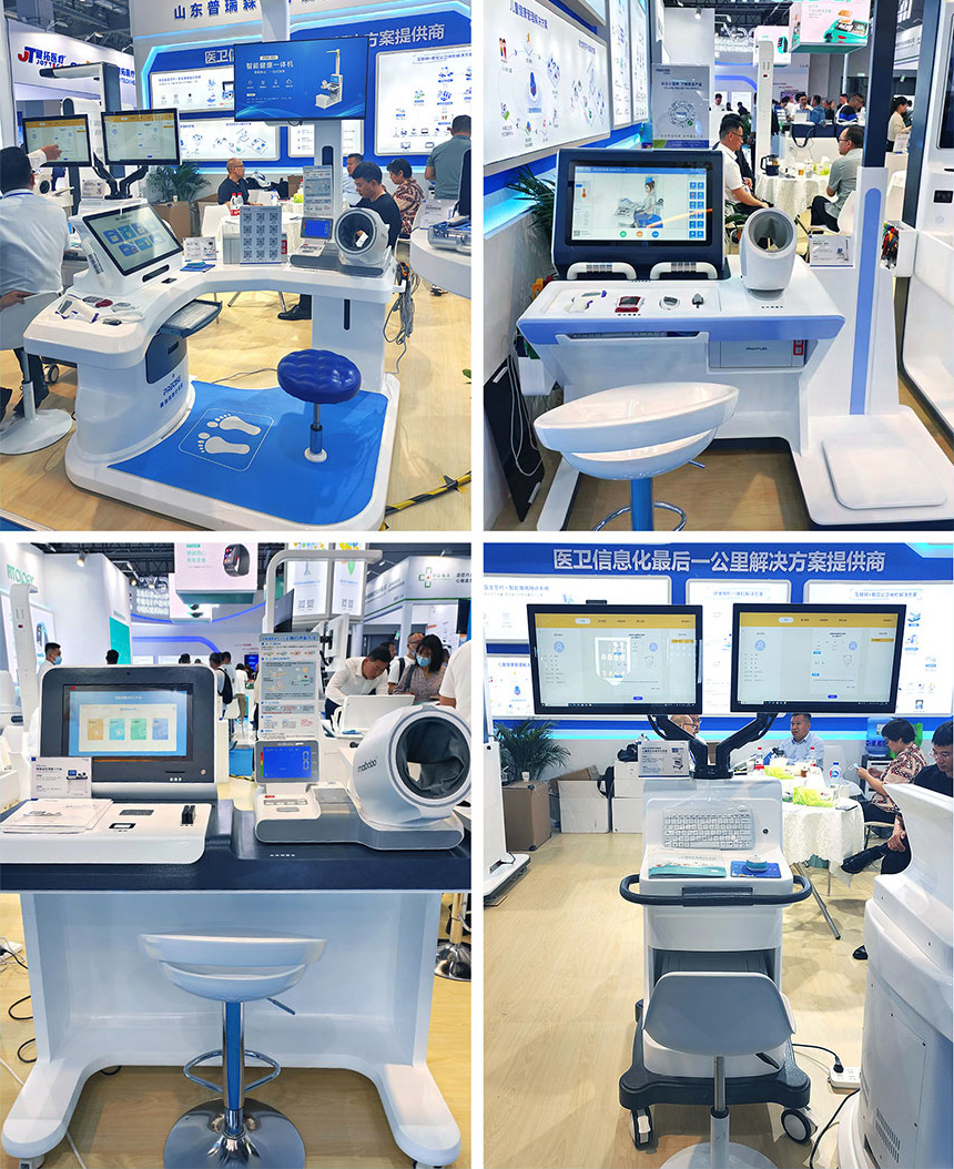 展会现场,”智能健康管理一体机”尤为火爆,吸引了众多参观者上前体验,测身高、体重、血压、体温等诸多健康指标一站式自助完成,所测数据自动上传,报告随检随出。产品搭载的个人健康管理系统和健康数据云平台,满足健康信息采集、档案共享、慢病管理、双向转诊等多项功能,为医疗机构、健康管理机构、社区等百余种应用场景提供有效的健康管理支撑。