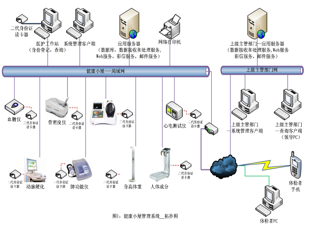 健康小屋介绍 1 数据采集处理子系统 1.1 身份信息采集程序 实现受测身份信息和体检结果采集功能,协调身份采集端口和设备端口,自动和所有接入的设备