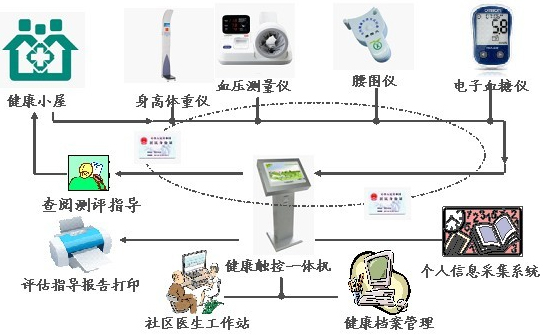 “健康小屋”是指通过物联网技术把一批健康检查设备整合在一个温馨、舒适的环境下,使受检者可以自主的选择检查项目,实现一系列生理参数的检测,系统自动对受