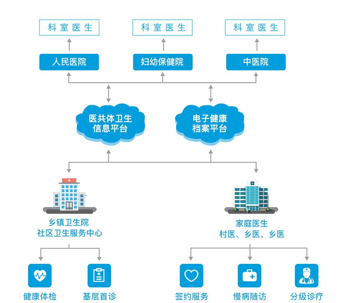 悟空体育・医防融合建设方案以慢病防控为切入点,通过在医共体内共享居民医疗信息和健康信息,打通村医、乡医、县级医生三级之间的数据壁垒,从而建立“三高共管,六病同防”慢性病管理体系,实现基于医防融合的整合型医疗服务,打通紧密型医共体建设的“最后一公里服务”。